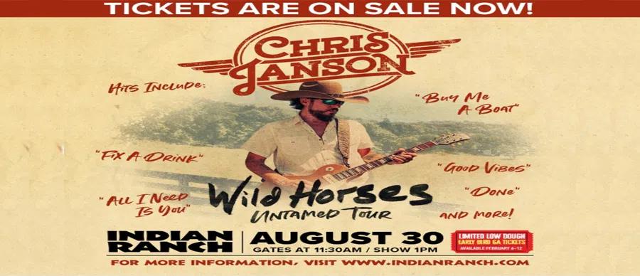 Chris Janson is bringing his "Wild Horses Untamed" tour to Indian Ranch on Sunday, August 30th & 98.9 Nash Icon has YOUR tickets ALL week long!