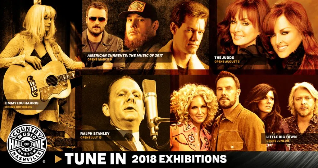 The 2018 schedule includes exhibits featuring Little Big Town, Ralph Stanley, the Judds and Emmylou Harris. In addition, American Currents: The Music of 2017 will include artifacts from Brothers Osborne, Kane Brown, Eric Church, Luke Combs, Maren Morris, Randy Travis and Chris Young.