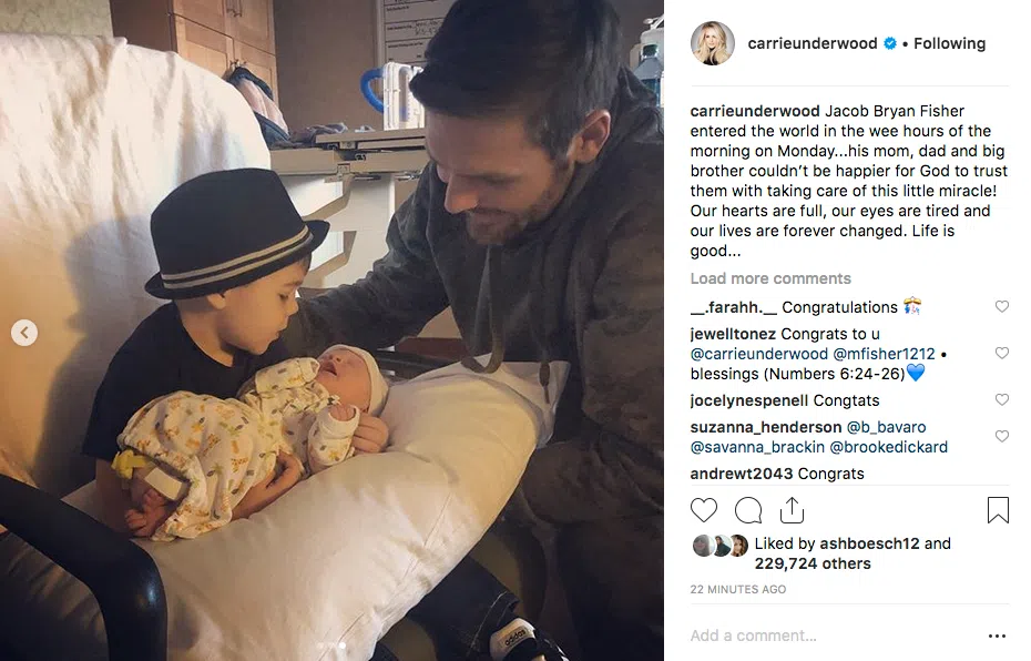 Carrie Underwood & Husband Welcome Baby Boy, Jacob Bryan Fisher